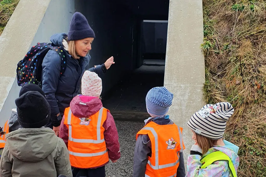 Christa Bohle – Künstlerin, Kulturvermittlerin, Pädagogin – besucht im Rahmen unserer Initiative "Kultur in Kinderschuhen" mit 29 Kindern des Hauses des Kindes Lech das Skyspace von James Turell.