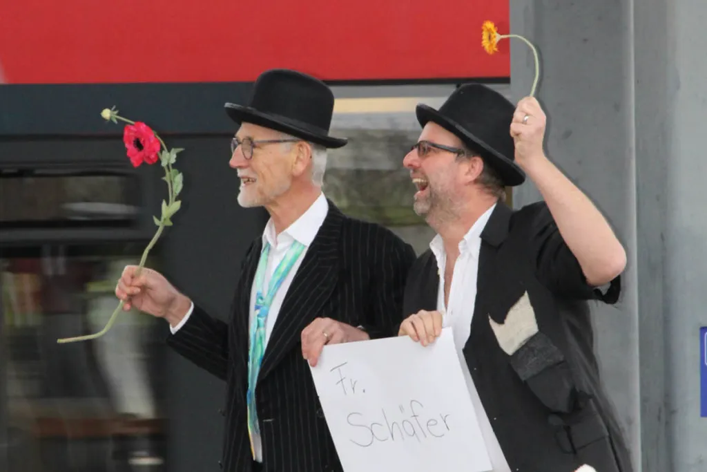 Sehnsüchtig erwartet – nun endlich eingetroffen – die weibliche Verstärkung für die reine „Männerwirtschaft“ der Schultheatercoaches.
