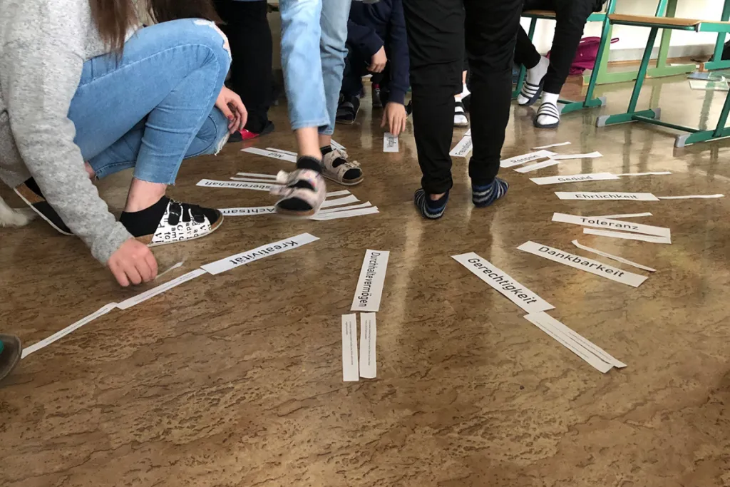 In nur zwei Schulstunden haben sich die Jugendlichen mit Stärkenbegriffen vertraut gemacht und zum Abschied einander mit einem warmen Rücken beschenkt. Ein Geduldspiel, bei dem jeder ein Blatt Papier auf dem Rücken trägt, auf das die anderen schreiben, was ihnen an der Person gefällt. Was schreiben die anderen auf meinen Rücken? Erst ganz am Ende der Stunde dürfen alle ihre Zettel anschauen.