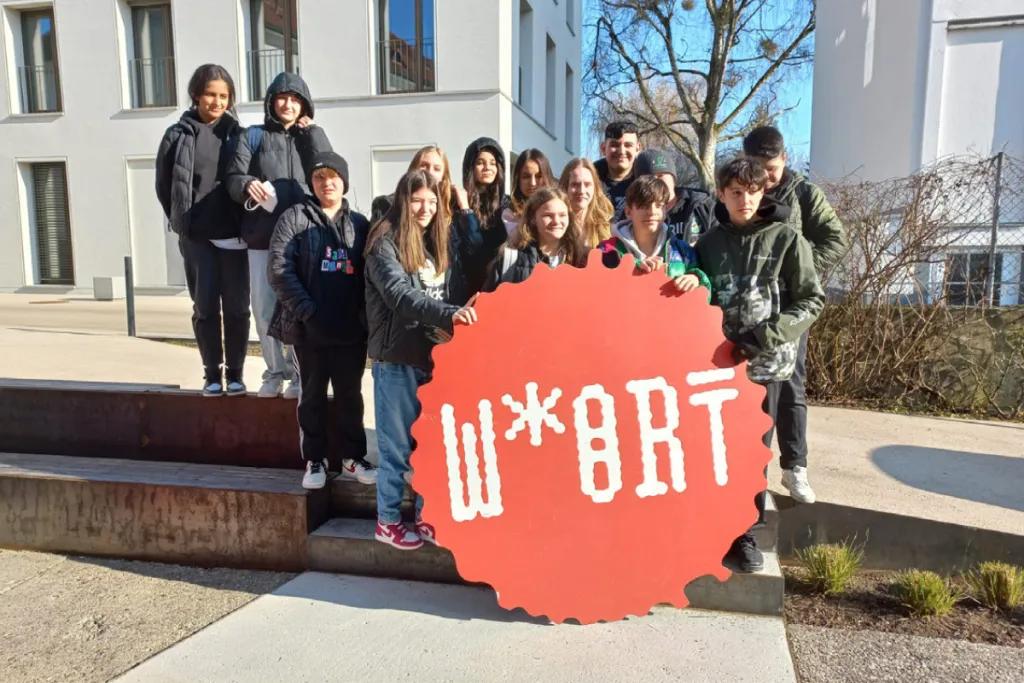 Im März 2022 ging es weiter mit dem tollen Projekt. Die Schüler:innen besuchten das W*ORT in Lustenau und wurden von Ruth Schmiedberger und Katy Bayer literarisch begleitet. Die Workshops mit Ruth endeten in einer kleinen Lesung. Bei einer der Schreibübungen ging es um Reime. Die Gruppe mit Katy Bayer arbeitete auf einen Poetry Slam hin. Mit diversen Schreibübungen, einem Stapel „Die Zeit“ und Edding tasteten sie sich an die Texte heran. 8 Schüler:innen stellten sich am Ende der Herausforderung, am Slam teilzunehmen. Katy, selbst erfahrene Slammerin, moderierte den Wettkampf der Wörter.