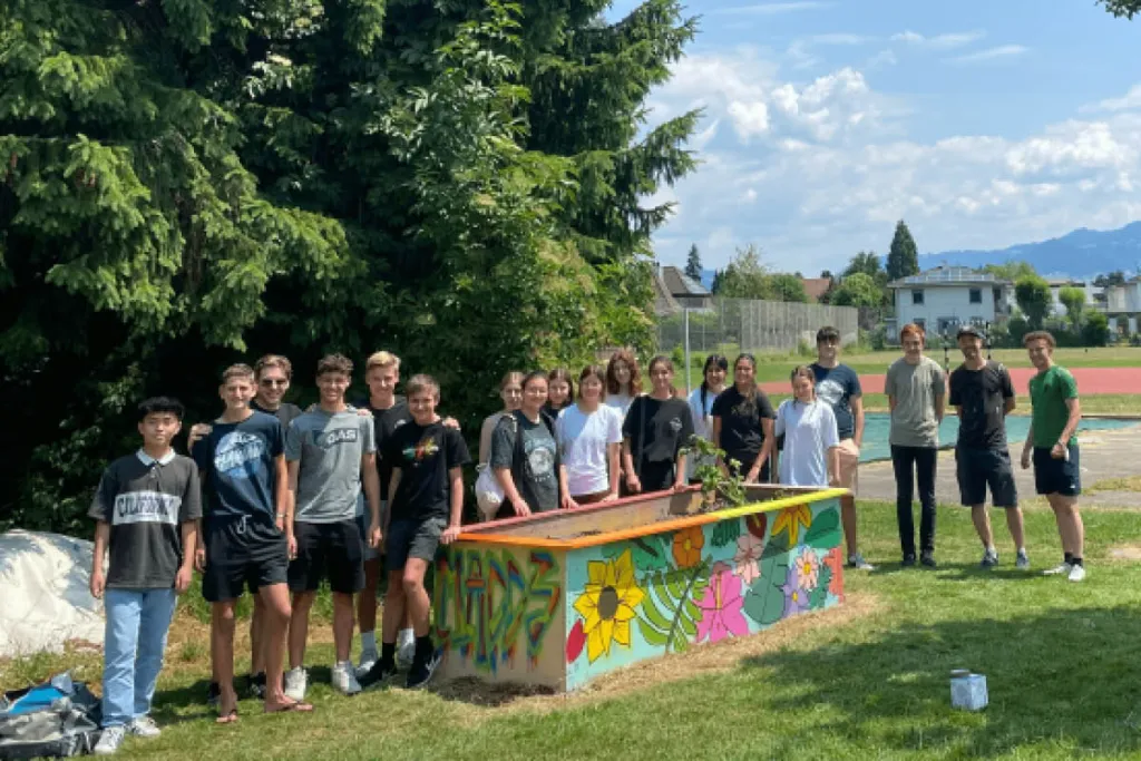 Im Rahmen eines fächerübergreifenden Projekts zwischen BWL und Naturwissenschaften im Jahr 2021, welches auch den „I luag druf“-Zukunftspreis gewonnen hat, bauten die Schüler:innen ein Hochbeet für ihren Naturgarten. Die Seitenflächen des Hochbeets bestehen aktuell aus Schaltafeln, welche nun gestaltet werden.