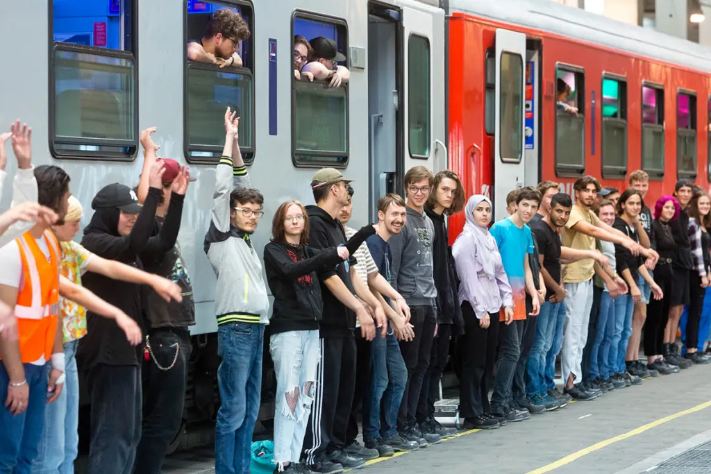 Der inhaltliche Ausgangspunkt für die künstlerische Auseinandersetzung mit dem Thema ist die von Christoph Thöny kuratierte, im Rahmen des Jubiläumsjahres entstandene Wanderausstellung "Auf Schiene" zur Bahngeschichte in Vorarlberg. Von dort aus erforschen die jungen Darsteller:innen Bereiche wie Migration, Auswanderung, Veränderung der Lebensräume, Arbeitswelten und auch eigene Mobilitätserfahrungen. Denn all dies hängt mit Bewegung zusammen. Die Zukunft kommt auch nicht zu kurz. Das Ensemble wagt auch einen Blick in die Ferne: Wie könnte Mobilität aussehen?