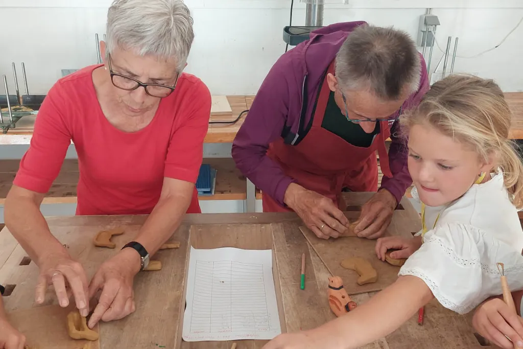 Um den Kindern diese Erfahrung näherzubringen, luden die Lehrerinnen der Volksschule Innerbraz, Angelika Wiederin und Isabelle Durig, den bekannten Tonkünstler, Tüftler und Musiker Kurt Posch mit seiner Frau Edith ein. Der bekannte Künstler aus Innerbraz ist ein Spezialist in der Kunst des Okarinabaus.
