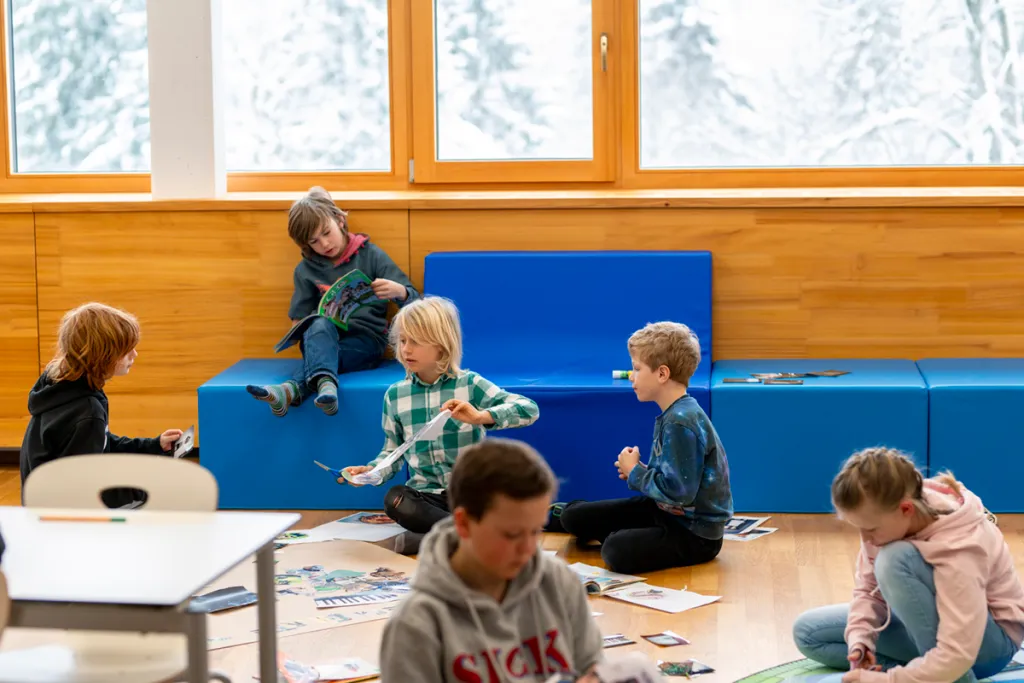 Die Schüler:innen der Volksschule Kleinwalsertal haben mit einer künstlerischen Arbeit auf Ihre eigene Naturumgebung reagiert.