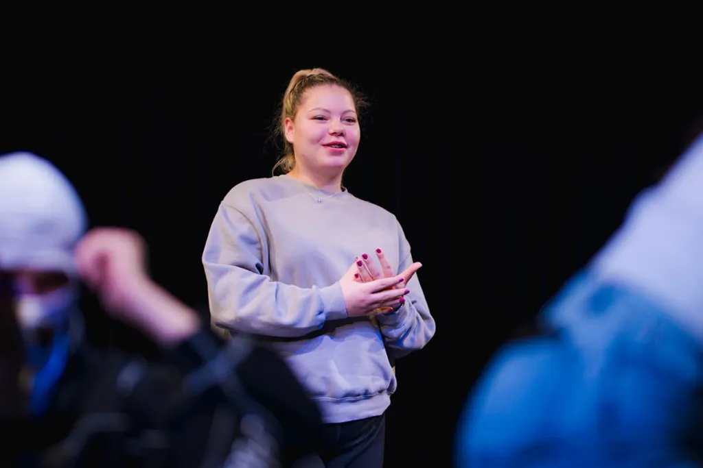 Damit die Szene gelingt, ist es nötig, als Gruppe zusammenzuarbeiten. Die Herausforderung Ideen in Bewegungsabläufe und Text umzuwandeln, kann gemeinsam gemeistert werden. Dadurch wird die Artikulationsfähigkeit und die Körperpräsenz der Jugendlichen gestärkt. Am Ende der zwei intensiven Arbeitstage sind alle 13 Teilnehmer:innen fähig, eine 15 minütige Präsentation zu zeigen.