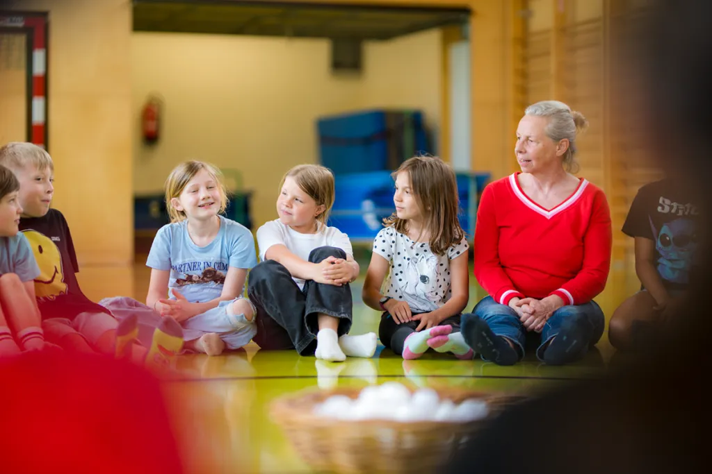 Das gemeinsame Umsetzen eines Lernthemas in Bewegung bringt vielfältige positive Effekte. Die Kinder arbeiten in Kleingruppen, oft nicht ausschließlich mit ihren engen Freunden, sondern auch mit neuen Partner:innen. Dadurch lernen sie, Kompromisse einzugehen, Rücksicht zu nehmen und andere Kinder auf eine neue Weise kennenzulernen.