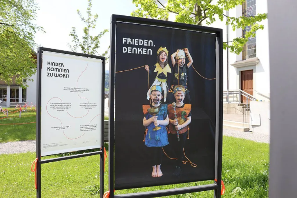 Auf der Eröffnungsfeier beim DENK.MAL in Hittisau waren viele der beteiligten Kinder mit ihren Eltern, Freunden und Verwandten anwesend, um stolz ihr Projekt zum Thema Frieden zu präsentieren und zu feiern.