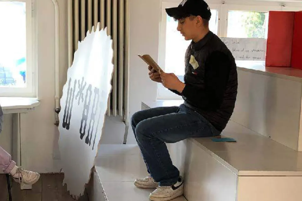 Vier Tage lang besuchten Amos und Ruth die zwei Klassen, brachten unterschiedliche Schreib- und Wortspiele in die Klassen, sammelten Stärken und schrieben über sie. Die entstandenen Geschichten und Collagen wurden im Buch „Ich bin super, weil ich ICH bin“ zusammengefasst.