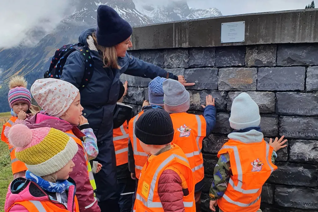Christa Bohle – Künstlerin, Kulturvermittlerin, Pädagogin – besucht im Rahmen unserer Initiative "Kultur in Kinderschuhen" mit 29 Kindern des Hauses des Kindes Lech das Skyspace von James Turell.