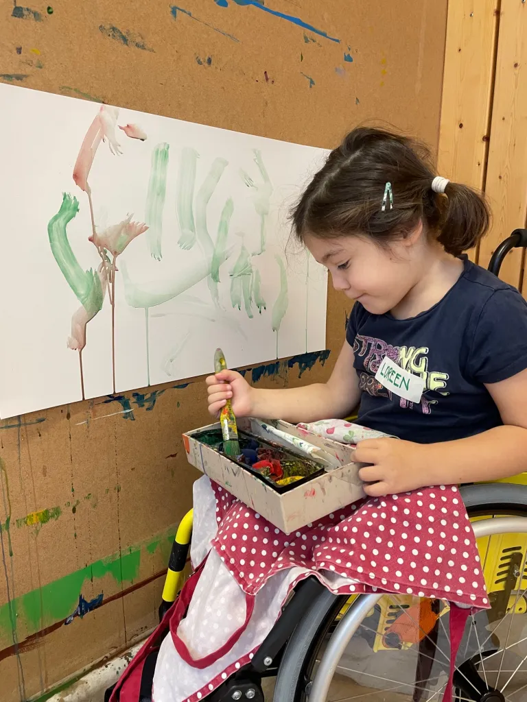 Inspiration liefern dabei große Künstler:innen wie Claude Monet, Henri Matisse, Franz Marc, Paul Klee oder auch Solange Pessoa. Die Arbeiten Letzterer werden mit den Kindern im Kunsthaus Bregenz erlebt. Die ausstellende Künstlerin ist sehbeeinträchtigt. Es gilt also eine besonders sinnliche Ausstellung wahrzunehmen. Besondere Blätter, die durch Kinderhände im Laufe des Projekts entstehen, werden gesammelt und gemeinsam mit den Eltern am Ende des Jahres festlich präsentiert. Mit allen Sinnen werden die Kinder innerhalb der Zusammenarbeit mit der Künstlerin Christa Bohle wortwörtlich begreifen, was Paul Klee meinte, als er sagte: