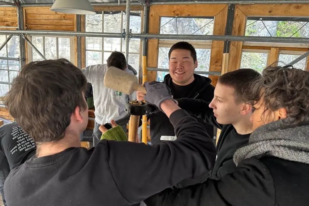 Lehrlinge aus der Region Walgau lernen den Steinbruch, den Kultursteg und das Material Bambus mit neuen Augen zu sehen. Aber nicht nur das - Anna Rubin vermittelt ihnen den Werkstoff Bambus genauso wie künstlerische Denkweise und handwerkliche Fertigkeiten. Dabei lernen sie intuitiv die Arbeitsweise der Künstlerin kennen. Sie lernen den Ort und das Material anhand ihrer Eigenschaften und Ästhetik einzuschätzen.