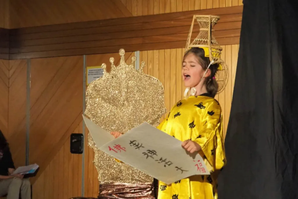Mit viel Spaß und Begeisterung waren die Drittklässler der VS Thüringen beim Theaterprojekt „Die Nachtigall“, ein Märchen von Hans Christian Andersen, dabei.