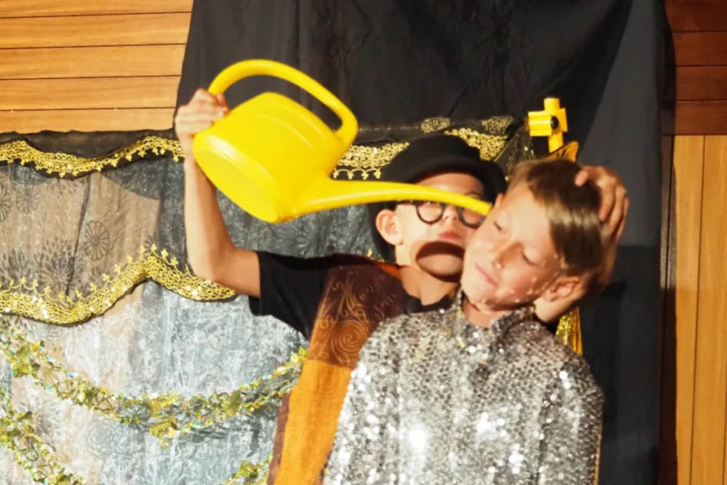 Wie schon seit vielen Jahren üblich wurde unter der Leitung der Theaterpädagoginnen Saskia Vallazza und Sabine Hennig das Theaterstück einstudiert. Sechs Tage lang drehte sich alles ums Theaterspielen. Anstatt Schreiben und Rechnen wurden die einzelnen Rollen geübt. Ein bisschen aufgeregt, aber stolz präsentierten die Kinder ihr Ergebnis am Ende in zwei Aufführungen. Das Publikum war begeistert und bedankte sich bei den jungen Schauspieler:innenn mit lautem Applaus.