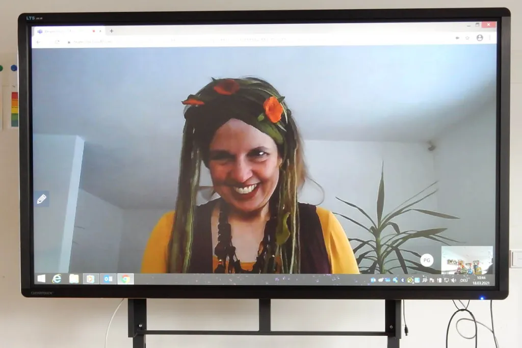 So tauchten sie beispielsweise in eine Geschichte aus dem Regenwald im Amazonas ein und woben jeweils einen zauberhaften Klangteppich mit Klängen aus dem Urwald. Dazu hatten sie im Vorfeld verschiedene Klanginstrumente und -körper erhalten, auch Stimmen des Urwalds, jene von Vögeln, Fröschen, Affen uvm. wurden spielerisch und heiter ausprobiert. So lauschten die Kinder nicht nur höchst gespannt der Geschichte des Fabeltiers Jurukre, der den Indios die Musik und die Lebensfreude näherbrachte, sondern waren mit Teil der Geschichte, in dem sie in vielen Einsätzen mit der klanglichen Gestaltung der Geschichte mit großer Freude mitwirkten. Der Geschichte voran ging eine Videobotschaft aus der inatura.