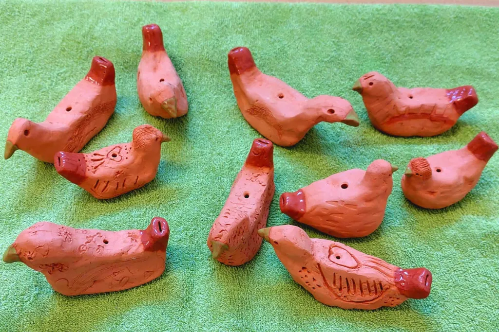 Für die Arbeit mit den Zweitklässlern der Volksschule entschied er sich für die Herstellung einer Gefäßflöte in Form eines Vogels. Vor Umsetzung des Projektes stellte Herr Posch in einer Werkstunde einen Prototyp der Gefäßflöte den Kindern vor. In den darauffolgenden Werkstunden gelang es jedem:r Schüler:in, mit der Unterstützung des Künstlers, aus einem Klumpen Ton seine individuelle Gefäßflöte zu formen.