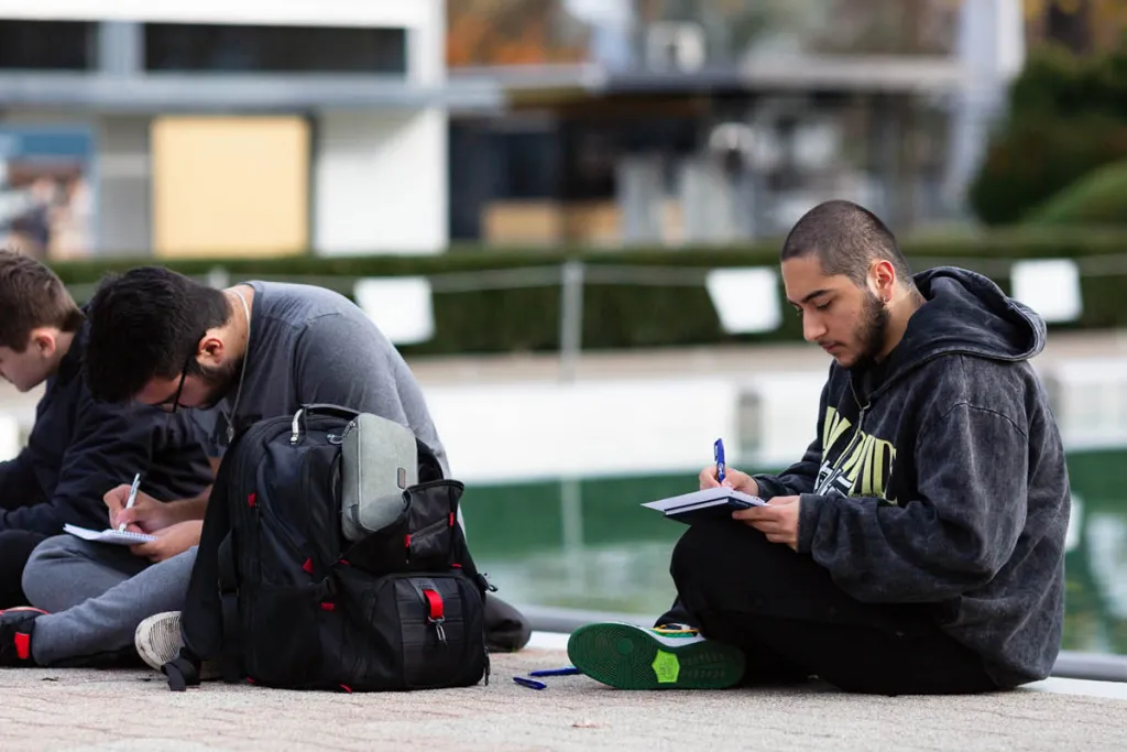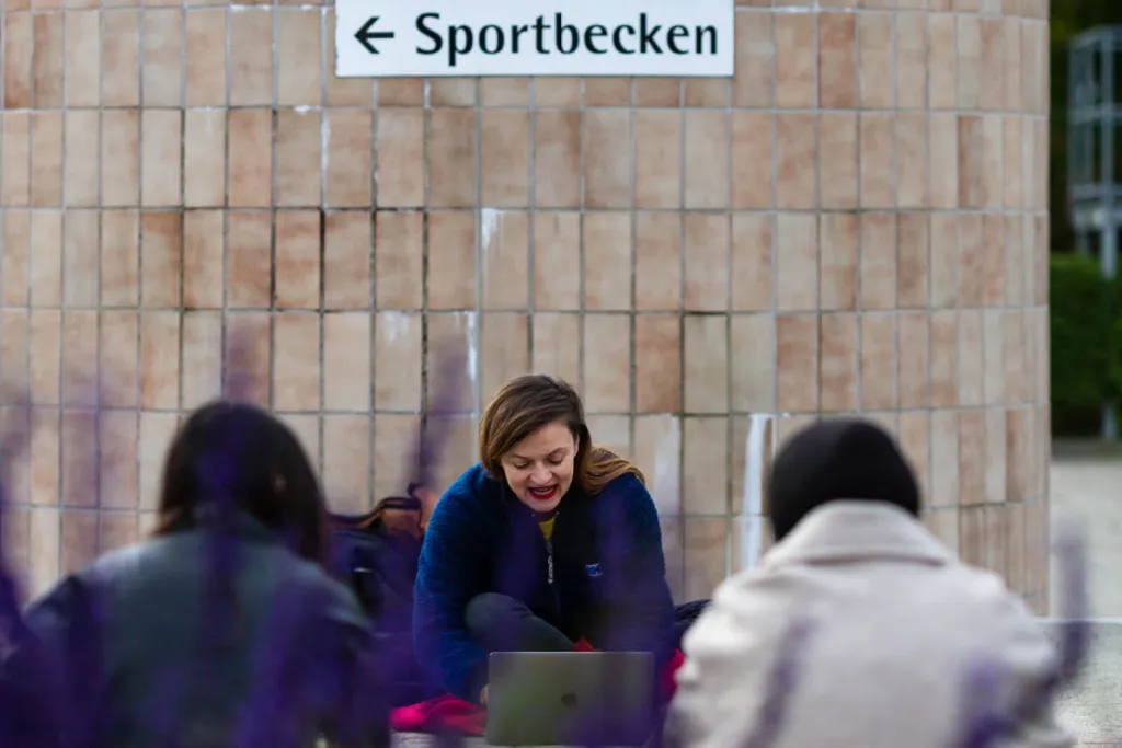 Regelmäßig, etwa alle 5 Wochen, findet ein Schreibworkshop statt, vorbereitet und geleitet von der Autorin Andrea Keller; sooft es geht in der Natur, sei es im großen Schulgarten oder abseits des Schulgeländes, etwa im Naherholungsgebiet am Alten Rhein. Lustenau lebt mit und am Wasser. Im Schreiben wird der Fokus auf Wasser gelegt, was folgerichtig und dennoch so nicht von vornherein geplant war. Der Arbeitsprozess ist offen und bietet Platz für Kreativität. Auf den Bildern ist das Schreiben im bereits geschlossenen Parkbad im November 2022 zu sehen.